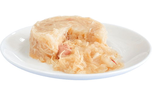Composição básica: Frango 79,1%, atum 12,6%, amido 3,7%, carragenina 1,8%, sal 1,8%, peixe bonito 0,8%, taurina 0,1%, carbonato de cálcio 0,1%.